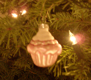 ooooh, und sogar am baum hing ein törtchen - dankedanke, liebste Zuckerbackschwester J.! (der cuppie gesellte sich zum braunbären '09, dem weihnachtsgürteltier '07 ... die hamburch-weihnachtskugel '08 hat's auf dem weg von der elbe an den rhein leider zerrissen *schluchz*)